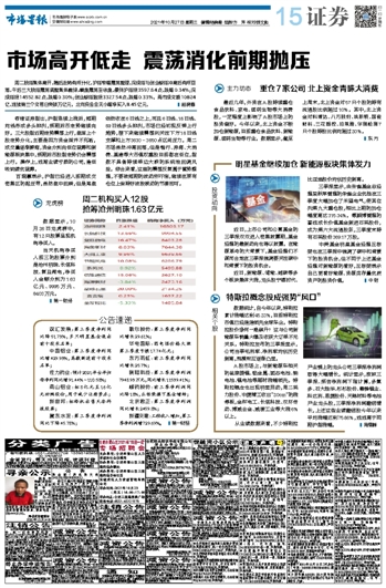 市场高开低走 震荡消化前期抛压