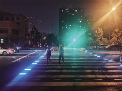在长江东路与泗州路交口,合肥市的首条智慧发光斑马线已于近日正式投入使用。当有行人迈进斑马线范围时,两边的地面灯会自动亮起,闪闪发光的斑马线就像一条“星光大道”;无人通行时,灯光则会自动熄灭。