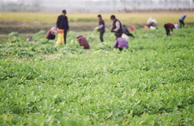 在鑫斌家庭农场,工人们在加紧采收种植的萝卜“叶太郎”。农场负责人罗发新告诉记者,他们已经连续6年栽种紫苏,今年9月份合同定制试种15亩“叶太郎”萝卜,只种这一季,每亩产量4000斤,每斤收购价为8毛钱。