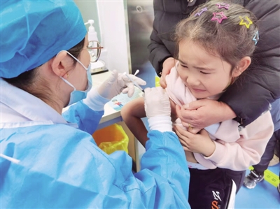 11月23日,合肥市瑶海区铜陵路街道辖区铜陵路街道卫生服务中心的医务人员正在为3岁至11岁、12岁至14岁、15岁至17岁等年龄段的幼儿园、中小学生接种新型冠状病毒灭活疫苗。截至目前,已经完成4929人疫苗接种,为保护孩子们身心健康筑高筑牢“防疫墙”。