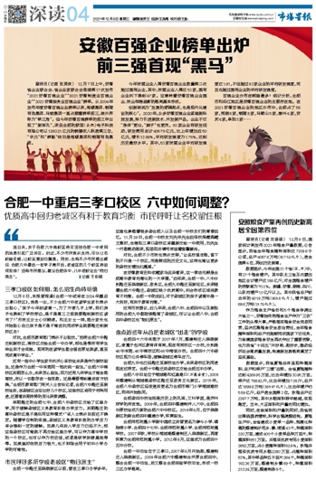 安徽百强企业榜单出炉 前三强首现“黑马”