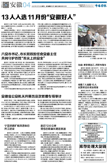 13人入选11月份“安徽好人”