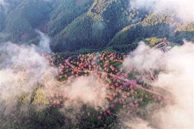 12月17日拍摄的云南省南涧县无量山樱花谷内盛开的冬樱(无人机照片)。 冬日,云南省南涧彝族自治县无量山樱花谷的上万株冬樱在千亩茶园里盛开,灿若云霞,宛若一幅画卷。 ■ 新华社发 适志宏/摄