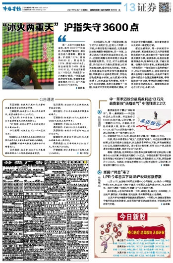“冰火两重天” 沪指失守3600点