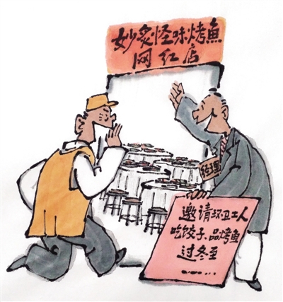 烤鱼店老板冬至请环卫工人吃饺子、品烤鱼,无疑是这个寒冷的冬季最温暖的场景,传递的是这个社会最可贵的正能量。