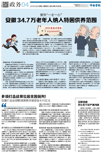 安徽34.7万老年人纳入特困供养范围