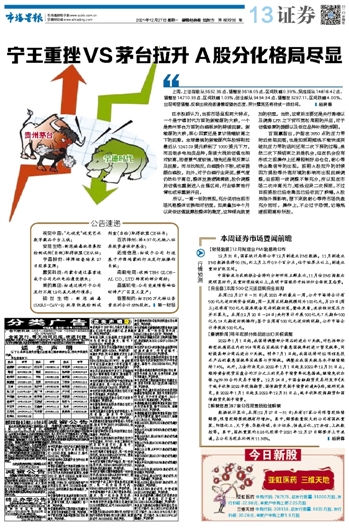 宁王重挫VS茅台拉升 A股分化格局尽显