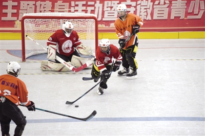 12月26日是北京2022年冬奥会开幕倒计时40天的日子。当日下午,在安徽省明光中学冰球馆内,该校冰球队进行分组对抗训练。在不久前结束的安徽省2021年青少年单排轮滑球锦标赛中,明光中学冰球队队员组成单排轮滑球运动队代表滁州市参赛,一举斩获男子甲乙组双冠军、女子甲乙组双亚军的优异成绩,初次亮相便“一鸣惊人”。