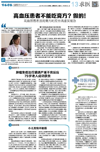 肿瘤免疫治疗遭遇严重不良反应 79岁老人成功获救