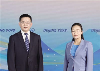 1月5日,北京冬奥组委新闻发言人赵卫东先生(左)、严家蓉女士正式与媒体见面。赛时,北京冬奥组委新闻发言人联合国际奥委会新闻发言人/国际残奥委会新闻发言人共同主持北京冬奥会/冬残奥会新闻发布会,介绍赛事最新情况,回应国内外媒体关切。■ 据新华社