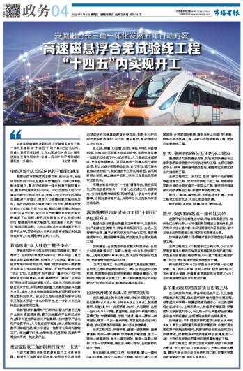 高速磁悬浮合芜试验线工程 “十四五”内实现开工