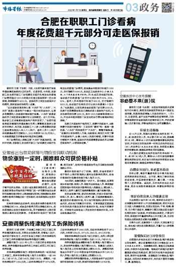 合肥在职职工门诊看病 年度花费超千元部分可走医保报销