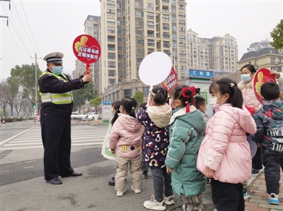 星报讯 1月10日,马鞍山交警开发区大队民警走进该市一中、翠螺小学以及凡尔赛公馆幼儿园,开展寒假前“最后一堂”交通安全课。活动中,大队民警通过在国旗下讲话、发放交通安全宣传资料和“手把手”教幼儿园小朋友们如何安全过马路等方式,结合学生寒假出行的特点,向同学们讲解如何安全步行、乘坐车辆等交通安全知识,并告诫他们假期外出时要遵守交通规则、安全文明乘车、不坐超员、超载和存在安全隐患的车辆,不在马路上打闹、横穿马路,以防发生意外事故,引导学生们牢固树立“守法规知礼让 安全文明出行”的意识。