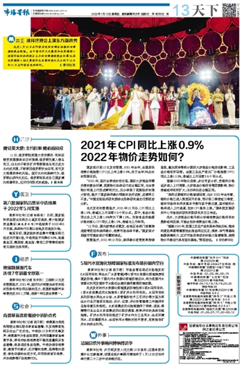 2021年CPI同比上涨0.9% 2022年物价走势如何?