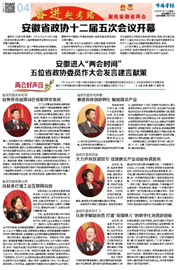 安徽进入“两会时间” 五位省政协委员作大会发言建言献策