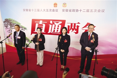 1月17日上午,安徽省十三届人大五次会议开幕会后,翟俊、孙明霞、赵静茹、高立新4位省人大代表走上安徽大剧院内搭建的“直通两会”通道,围绕政府工作报告,坚持稳字当头、稳中求进,实施三次产业高质量协同发展行动计划,推动经济高质量发展等,谈感受、讲体会,共谋安徽发展之路。