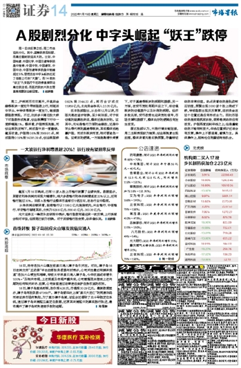 A股剧烈分化 中字头崛起 “妖王”跌停