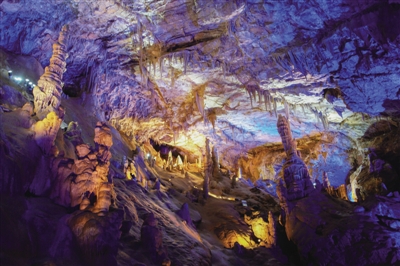 这是日前拍摄的万象洞内部景象。万象洞位于甘肃省陇南市武都区汉王镇,是我国西北地区一处规模宏大的天然溶洞。据地质专家考证,万象洞属于典型的喀斯特岩溶地貌,有2.5亿年至3亿年历史。 ■ 新华社记者 郎兵兵/摄