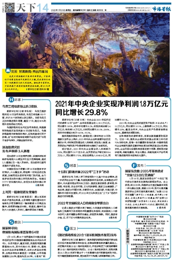 2021年中央企业实现净利润1.8万亿元同比增长29.8%