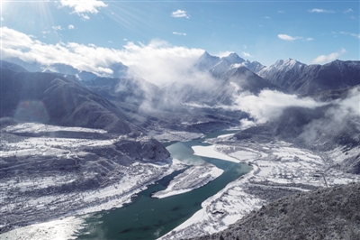西藏林芝市米林县派镇雅鲁藏布大峡谷雪景。日前,西藏林芝市米林县派镇雅鲁藏布大峡谷附近普降瑞雪,银装素裹的雅鲁藏布江和南迦巴瓦峰显得格外壮美。 ■ 新华社发 董志雄/摄
