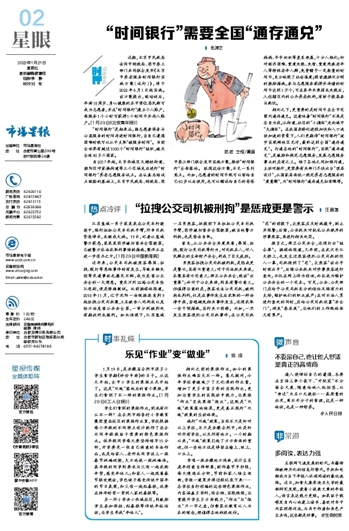“时间银行”需要全国“通存通兑”