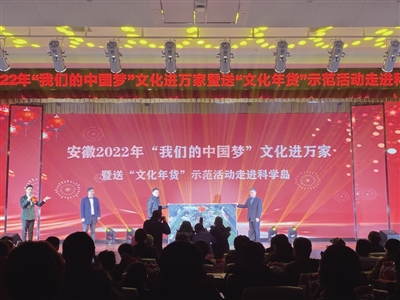 星报讯 迎着新春的脚步,踏着欢乐的节拍,昨日,由中共安徽省委宣传部、省文明办、省文化和旅游厅、省广电局、省文联共同主办的2022年“我们的中国梦”——文化进万家暨送“文化年货”示范活动,走进坐落于科学岛的中国科学院合肥物质科学研究院,为奋战在科研一线的科技工作者送上新春祝福。