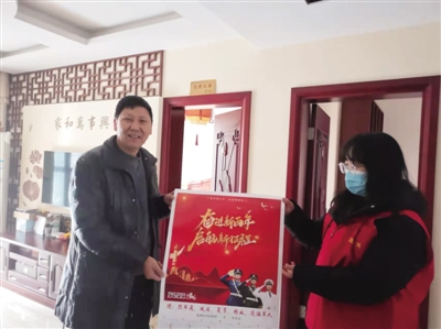 春节临近,为切实做好拥军优属工作,1月18日,合肥市骆岗街道石桥社区退役军人服务站为辖区内的退役军人送去2022年精美年画,感谢他们为国家作出的巨大贡献,并送上新春的问候。