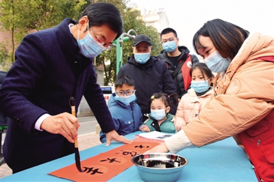 日前,肥东县文学艺术届联合会、东城文传公司、肥东县志愿服务总队、肥东经开区开新时代文明实践所、燎原社区新时代文明实践站联合开展2022年“我们的节日·春节”志愿服务活动,组织书法家走进燎原社区贵王小区,为群众书写春联,送去新春的祝福。