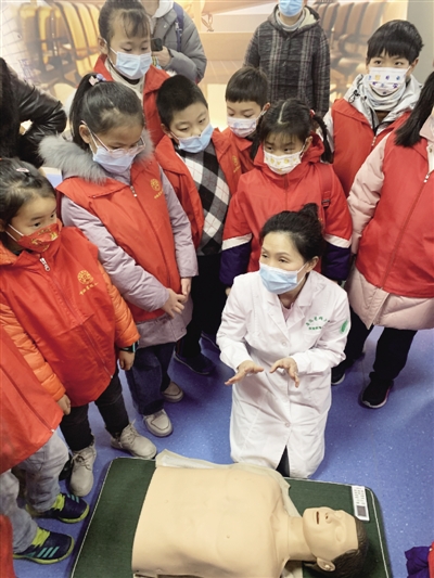 在心肺复苏灾难现场救护基地,这里主要进行心肺复苏灾难现场救护培训和红十字运动与医学救护知识科普宣传。负责讲解的张老师首先向小记者们科普心肺复苏的意义和要领。随后,张老师利用“模拟人”为大家现场展示了心肺复苏的操作流程。学习结束后,小记者和家长们按照老师的指导,进行了分组实操练习。“今天参观的标本太有趣、太震撼、太难忘了,原来成为一位医学生,要学习这么多复杂的知识啊!”家长们也纷纷表示,此番参观真正感受到生命科学的魅力。