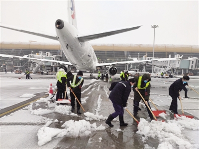 星报讯 2月7日凌晨,合肥地区迎来大雪,合肥机场气温骤降,给航班的运行保障工作带来了巨大的压力。合肥机场当日早晨5:50到9:30暂时关闭。