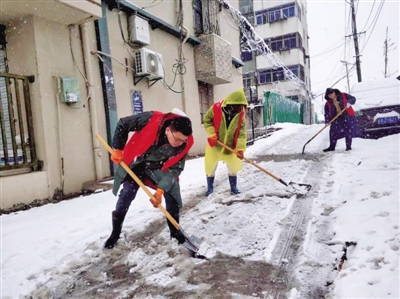 | 2月7日,合肥市瑶海区铜陵路街道组织党员、居民、志愿者等深入辖区主次干道、地铁站、公交站台,清扫积雪。 ■ 徐振国 吴兰保 文/图 |