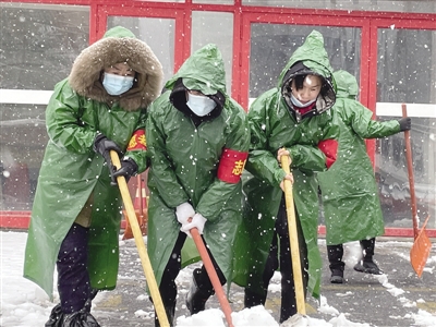 | 7日早上7点多,合肥市包河区义城街道迎淮社区党员和志愿者们,对社区党群服务中心、卫生服务中心及公交站台等周边积雪进行铲扫,确保群众出行安全。 ■ 束飞 史玉婷 记者 周诚 文/图 |