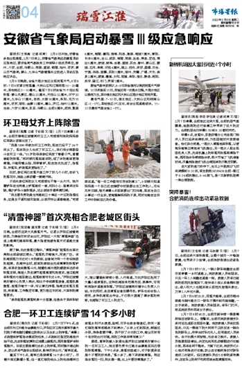 合肥一环卫工连续铲雪14个多小时