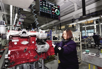 2月7日,在安徽全柴集团有限公司,工人在组装生产发动机。当日是春节假期后的第一个工作日,各地企业在做好疫情防控的前提下有序开工,迎来新春“开门红”。 ■ 新华社发 沈果/摄