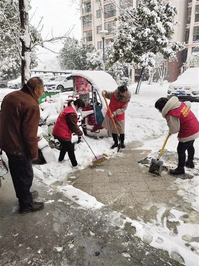 在探访看望独居、空巢老人的同时,社区工作人员和志愿者还带着铁锹、扫帚等工具,帮助老人们清扫干净房前屋后人行道上的积雪,确保出行安全。