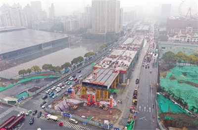 宿松路快速化改造工程,主线采用“高架+地面+隧道”相结合的方式,全长22.85公里,项目概算总投资约80亿元,全段计划2024年3月竣工通车。目前,繁华大道节点和锦绣大道节点已基本完成第一阶段管线迁改施工任务。