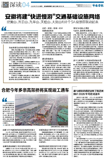 安徽将建“快进慢游”交通基础设施网络