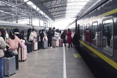 2月16日,在安徽省阜阳火车站内,旅客有序进站乘车出行。当日是元宵节后第一天,各地铁路迎来节后客流出行高峰。 ■ 新华社发 王彪/摄