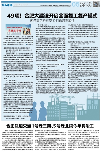 合肥轨道交通1号线三期、5号线北段今年将竣工