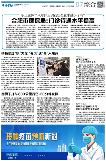 广告垂询电话:0551-62815807 新闻热线:0551-62620110 网络部:0551-62636377 发行部电话:0551-62813115