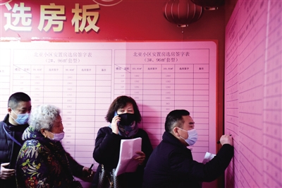 2月17日早上8点多,年过八旬的曹铭秀奶奶完成选房,“面积是118㎡,楼层正是我喜欢的。”拿着房号牌,曹铭秀奶奶欣喜之情溢于言表,她深情回忆道,自己原先在北亚小区50多平方米的老房子里“蜗居”了大半生,“房子又破旧又狭小,如今要住进宽敞明亮的楼房,我太开心了!”