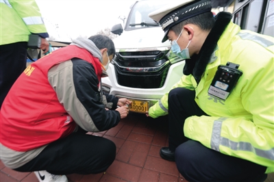2月18日,合肥市违规电动三四轮车管理工作启动首日,在瑶海区寿春路与胜利路交叉口,市民来到合肥市公安局交警支队瑶海大队一处备案登记点有序办理备案登记,并现场领取、安装备案登记标志。