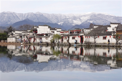 黄山黟县: 雪山映古村