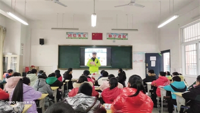 2月18日上午,合肥高速六大队党支部宣传志愿小组走进世纪新都小学开展“开学第一课——交通安全知识进校园”宣讲活动。其间,宣传交警用通俗易懂的语言为学生们深入浅出地讲解当前道路交通环境,详细讲解信号灯指示,过马路、乘车、骑车等应注意事项及知识,引导学生养成遵守交通法规的好习惯,增强自身安全防范意识。 ■ 本记