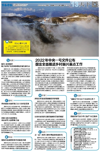 2022年中央一号文件公布 提出全面推进乡村振兴重点工作