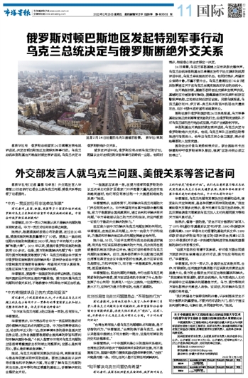 外交部发言人就乌克兰问题、美俄关系等答记者问