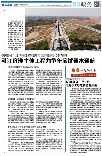 引江济淮主体工程力争年底试通水通航