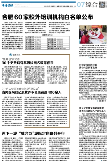 广告垂询电话:0551-62815807 新闻热线:0551-62620110 网络部:0551-62636377 发行部电话:0551-62813115