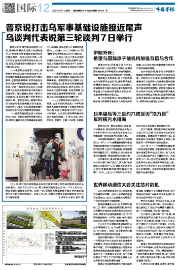 普京说打击乌军事基础设施接近尾声 乌谈判代表说第三轮谈判7日举行