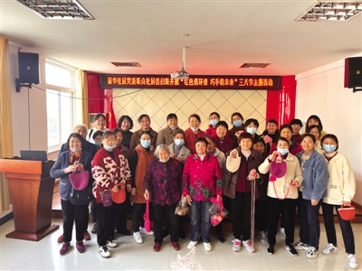3月8日,合肥市新华社居委联合安泰社工开展“红色倡环保 巧手织未来”庆祝三八妇女节活动,活动现场,辖区工作人员手把手传授居民钩针技巧,边制作边讲解,不一会儿,一件件精美的手工包制作完成。